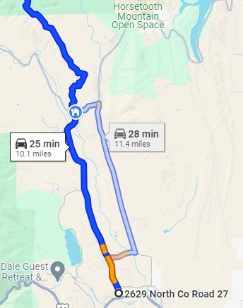 Our community is serviced by Fire station 7, located at 2629 N County Rd 27, Loveland,CO 80537. Response time is minimally 25 minutes (10.1 miles) Road and weather conditions can greatly affect this time.